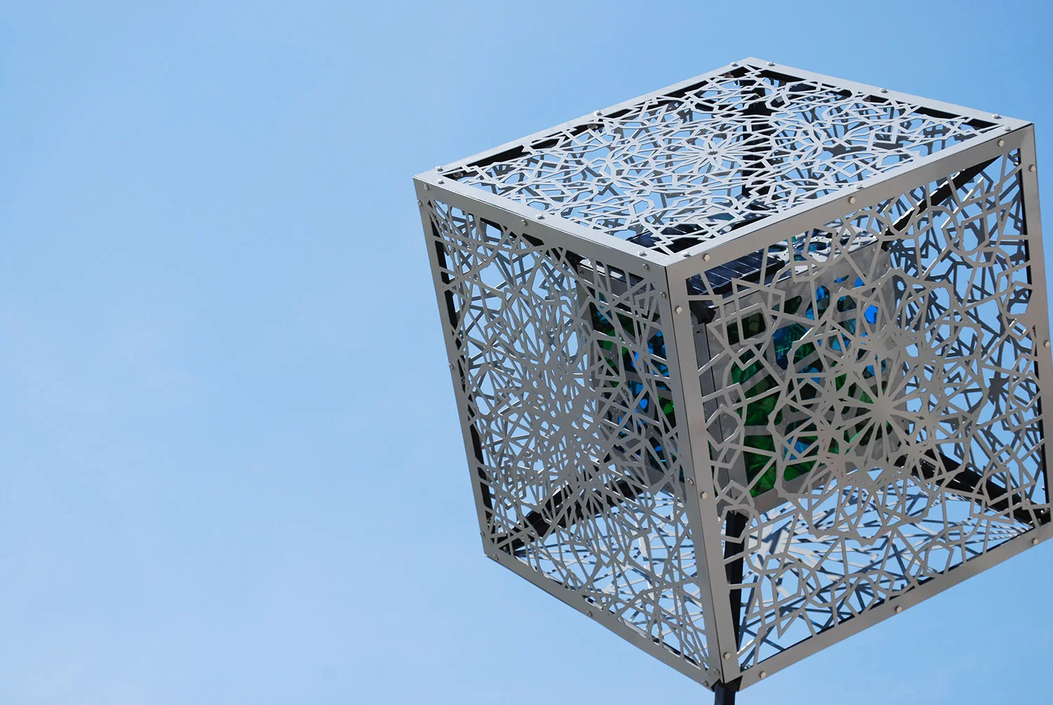 The Flying Objects public art project that began ten years ago as a way to weave art into the fabric of Salt Lake City’s downtown. Since its inception, five iterations of Flying Objects have been completed. Mandala Lantern is part of Flying Objects 5.0, the fifth and final installment in the series, and is one of 18 permanent pieces in Downtown Salt Lake.